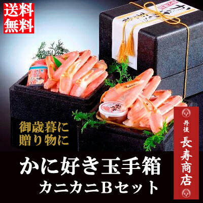 品名 かに好き玉手箱 カニカニ Bセット 約4人前 <発送は11/6?3/末までの期間となります> 通販部よりお客様へ 【かにすき セット】 ・生ずわいがに(ロシア産/冷凍)4L大サイズ使用。 ・生の新鮮な状態で急速冷凍しています。 ・身入りの良い厳選されたずわいがにを使用。 ・食べやすく調理済なので包丁・はさみは不要です。 ・かにすき鍋用の出汁付き ・かにみそ付 【販売者】株式会社ポラリス 京都府京丹後市網野町木津5番地 内容量 ・ずわいがに4L大サイズ/4肩分 ・かにすきだし150ml ・かにみそ100g 食べ方 ・カニは直接冷水をかけて約5?10分程で解凍して下さい。火を通してお召し上がり下さい。 解凍時の注意 ・解凍後は1時間以内にお召し上がり下さい。 ※時間がたつと酸化して黒く変色することもございます。食べられますが、鮮度が落ちますので、 調理していただく直前に解凍をお願いします。 賞味期限 冷凍保存 1年間 保存調理 要冷凍-18℃以下で保存 加熱してありません。加熱してお召し上がりください。 発送形態 発砲スチロール 発送日 【発送期間】11/6?3/31まで 毎週月水金曜に発送いたします。 お届けご希望&指定日がある場合は備考欄にてお知らせ下さい。到着日に合わせて発送させて頂きます。 【注意】ご注文からお届けまで3?5日間程かかる場合がございますので余裕をもってご注文くださいませ。 発送業者 ズワイガニ・生ずわいがに・蟹・かにしゃぶ・カニ 御歳暮 セット・かに お正月・御歳暮 カニ クロネコヤマト便 ズワイガニ 脚・ずわいがに 御歳暮・カニしゃぶ・かに 御歳暮・御歳暮 かに・カニ鍋用・かに鍋用 発送温度 特記事項 ・北海道・沖縄県・離島へお届けの場合は送料が別途500円必要となりますのでご注意くださいませ。返信メールにて送料追加してお送りいたしますのでご確認ください。 ▲短冊のしにて対応させて頂いております。 ●同梱は同一お届け先に限ります。 ●同梱できない商品もございます。 ●お客様のご都合により商品のお受け取りができない場合、送料・商品代をご負担いただく場合がございます。予めご了承ください。 明細書について 明細書は発行しておりません。 明細書や領収書が必要な際は、備考欄にメッセージとして「明細書必要」の旨をご記載いただくかメールにてご連絡下さい。 この商品のお問い合わせ先 ■京丹後 蟹おこわ 5個 <雨宿りの宿 雨情草庵> 温めるだけだからとっても便利♪ ■生ズワイガニセット6?8人前【4L/8肩】 長寿商店よりお客様へ 京都府 京丹後市の有名旅館「佳松苑」グループ傘下のお店より、送料無料・送料込みのお得なご自宅用・御歳暮・御中元・お年賀・母の日・父の日・敬老の日・御祝い・御礼・御挨拶・御進物・引き出物・結婚祝い・出産祝いなど様々な内祝い、仏事・法事・法要・香典返しなどの仏事用、お土産などにお使い頂ける贈答用。そして、上品な贈答用セットなどをご用意しています。長寿の郷から、こだわりの和菓子・海産物・調味料・お米・野菜をお届けします。■パワースポット「かにかに神社」 当店「かにはん」内にございます